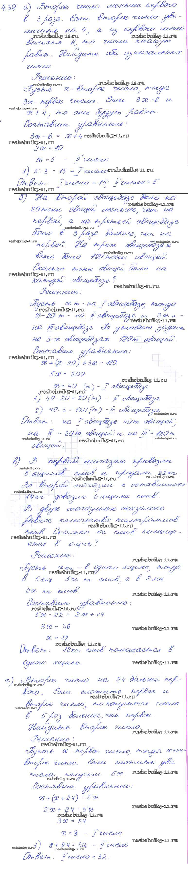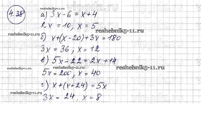 Готовая домашняя работа с ответами по Алгебре за 7 класс Мордкович, Александрова, Мишустина, Тульчинская Задачник Базовый уровень Часть 2 Мнемозина 2013 ФГОС - § 4. Линейное уравнение с одной переменной 38