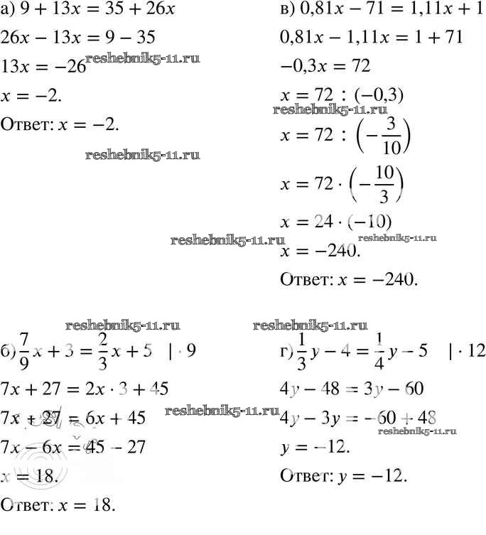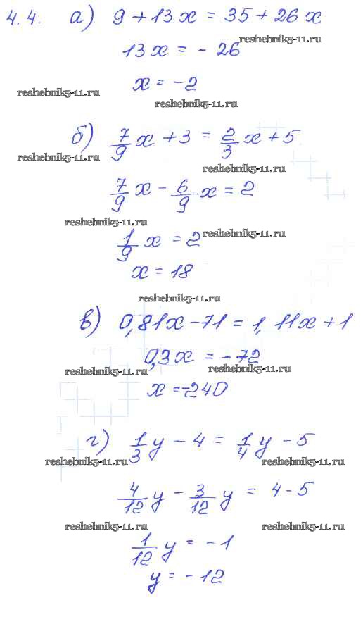 Готовая домашняя работа с ответами по Алгебре за 7 класс Мордкович, Александрова, Мишустина, Тульчинская Задачник Базовый уровень Часть 2 Мнемозина 2013 ФГОС - § 4. Линейное уравнение с одной переменной 4