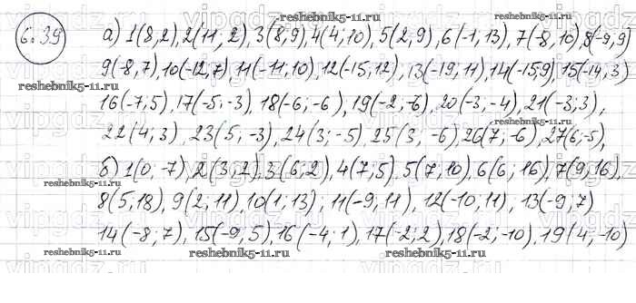 Готовая домашняя работа с ответами по Алгебре за 7 класс Мордкович, Александрова, Мишустина, Тульчинская Задачник Базовый уровень Часть 2 Мнемозина 2013 ФГОС - § 6. Координатная плоскость 39