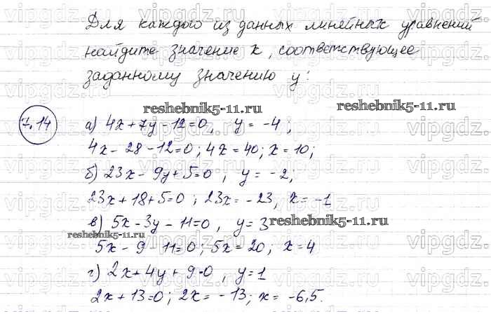 Готовая домашняя работа с ответами по Алгебре за 7 класс Мордкович, Александрова, Мишустина, Тульчинская Задачник Базовый уровень Часть 2 Мнемозина 2013 ФГОС - § 7. Линейное уравнение с двумя переменными и его график 14