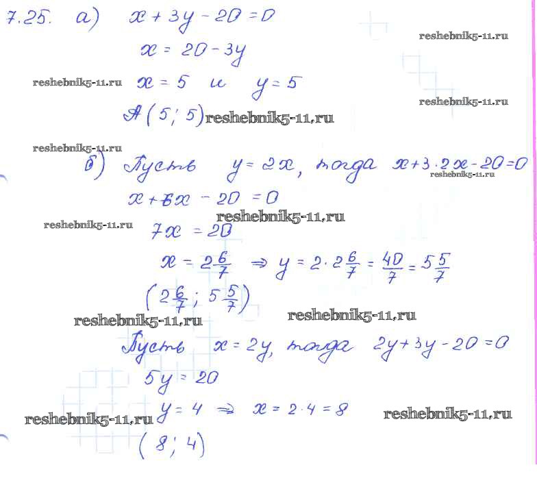 Готовая домашняя работа с ответами по Алгебре за 7 класс Мордкович, Александрова, Мишустина, Тульчинская Задачник Базовый уровень Часть 2 Мнемозина 2013 ФГОС - § 7. Линейное уравнение с двумя переменными и его график 25