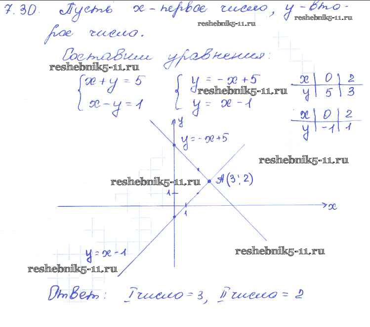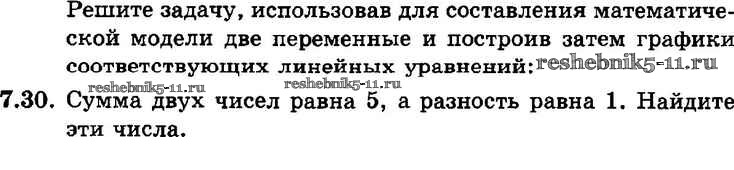 Готовая домашняя работа с ответами по Алгебре за 7 класс Мордкович, Александрова, Мишустина, Тульчинская Задачник Базовый уровень Часть 2 Мнемозина 2013 ФГОС - § 7. Линейное уравнение с двумя переменными и его график 30