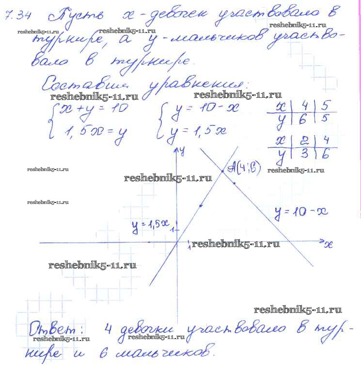 Готовая домашняя работа с ответами по Алгебре за 7 класс Мордкович, Александрова, Мишустина, Тульчинская Задачник Базовый уровень Часть 2 Мнемозина 2013 ФГОС - § 7. Линейное уравнение с двумя переменными и его график 34