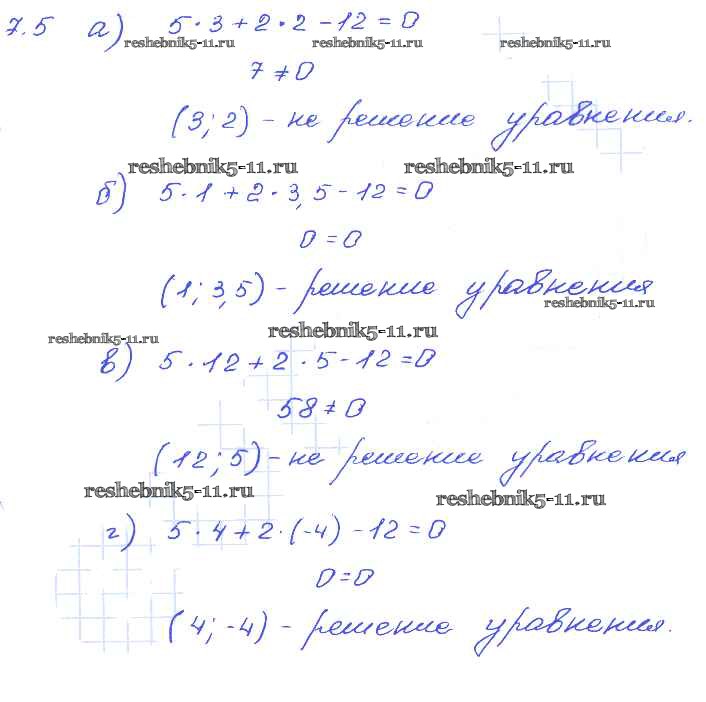 Готовая домашняя работа с ответами по Алгебре за 7 класс Мордкович, Александрова, Мишустина, Тульчинская Задачник Базовый уровень Часть 2 Мнемозина 2013 ФГОС - § 7. Линейное уравнение с двумя переменными и его график 5