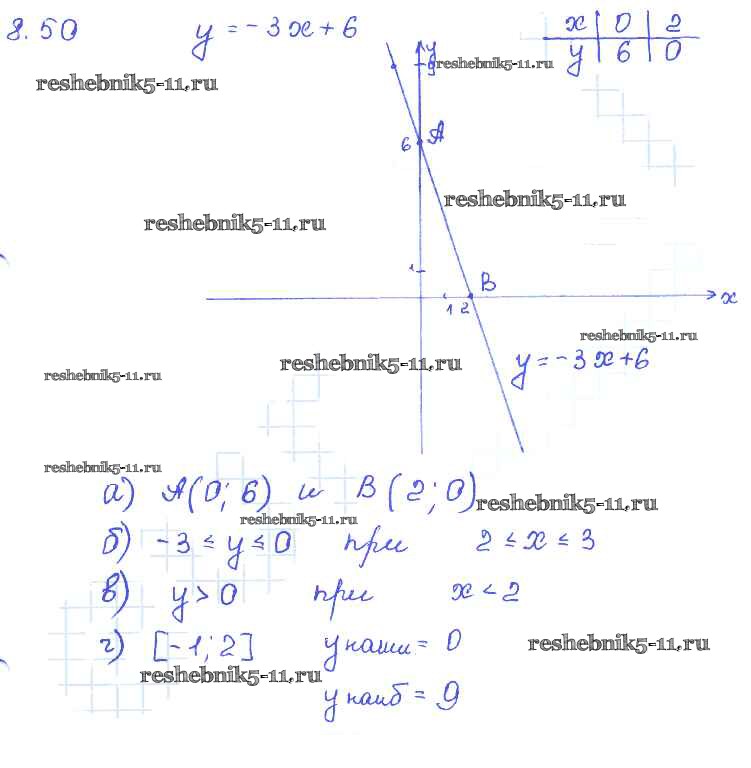 Готовая домашняя работа с ответами по Алгебре за 7 класс Мордкович, Александрова, Мишустина, Тульчинская Задачник Базовый уровень Часть 2 Мнемозина 2013 ФГОС - § 8. Линейная функция и ее график 50