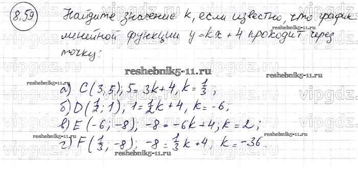 Готовая домашняя работа с ответами по Алгебре за 7 класс Мордкович, Александрова, Мишустина, Тульчинская Задачник Базовый уровень Часть 2 Мнемозина 2013 ФГОС - § 8. Линейная функция и ее график 59