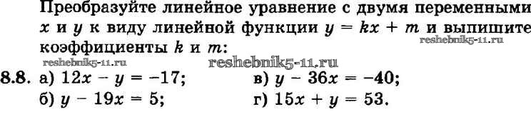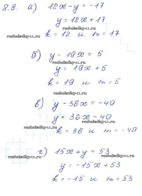 Готовая домашняя работа с ответами по Алгебре за 7 класс Мордкович, Александрова, Мишустина, Тульчинская Задачник Базовый уровень Часть 2 Мнемозина 2013 ФГОС - § 8. Линейная функция и ее график 8