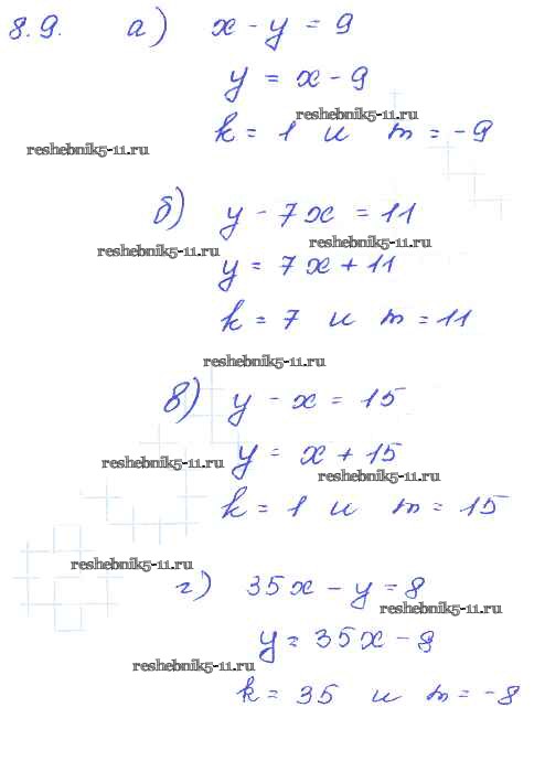 Готовая домашняя работа с ответами по Алгебре за 7 класс Мордкович, Александрова, Мишустина, Тульчинская Задачник Базовый уровень Часть 2 Мнемозина 2013 ФГОС - § 8. Линейная функция и ее график 9