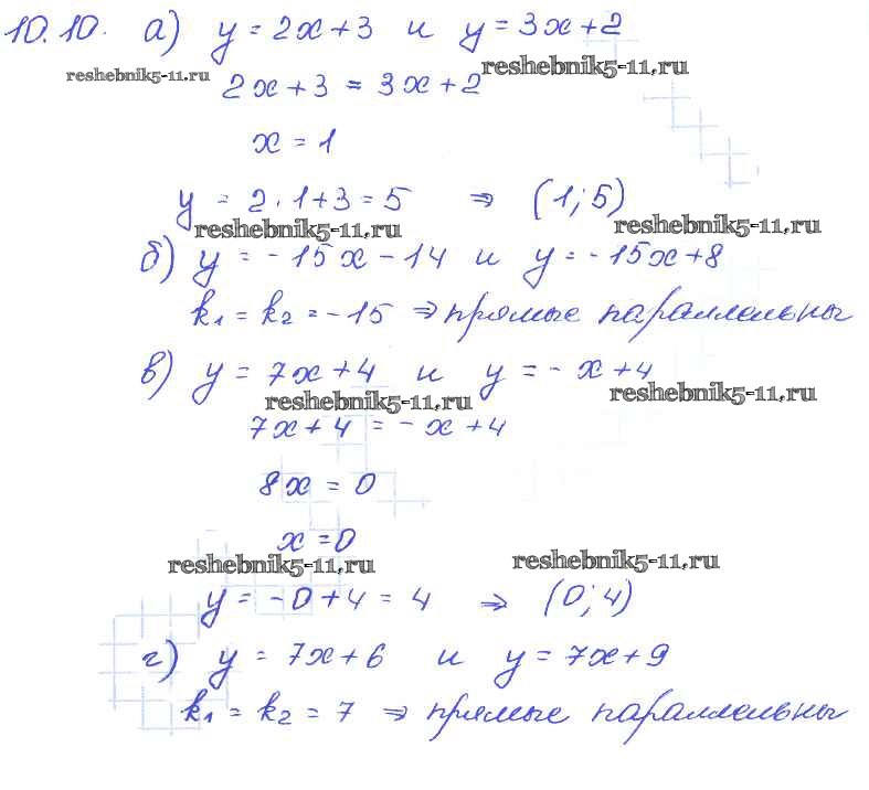 Готовая домашняя работа с ответами по Алгебре за 7 класс Мордкович, Александрова, Мишустина, Тульчинская Задачник Базовый уровень Часть 2 Мнемозина 2013 ФГОС - § 10. Взаимное расположение графиков линейных функций 10