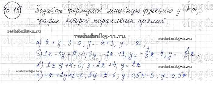 Готовая домашняя работа с ответами по Алгебре за 7 класс Мордкович, Александрова, Мишустина, Тульчинская Задачник Базовый уровень Часть 2 Мнемозина 2013 ФГОС - § 10. Взаимное расположение графиков линейных функций 15