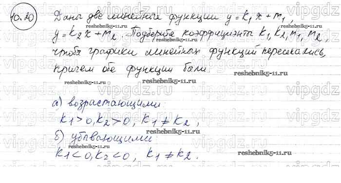 Готовая домашняя работа с ответами по Алгебре за 7 класс Мордкович, Александрова, Мишустина, Тульчинская Задачник Базовый уровень Часть 2 Мнемозина 2013 ФГОС - § 10. Взаимное расположение графиков линейных функций 20