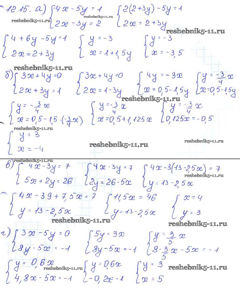 Готовая домашняя работа с ответами по Алгебре за 7 класс Мордкович, Александрова, Мишустина, Тульчинская Задачник Базовый уровень Часть 2 Мнемозина 2013 ФГОС - § 12. Метод подстановки 15