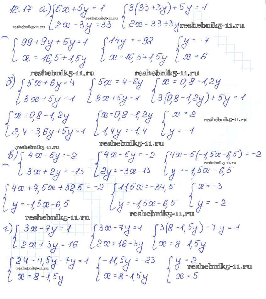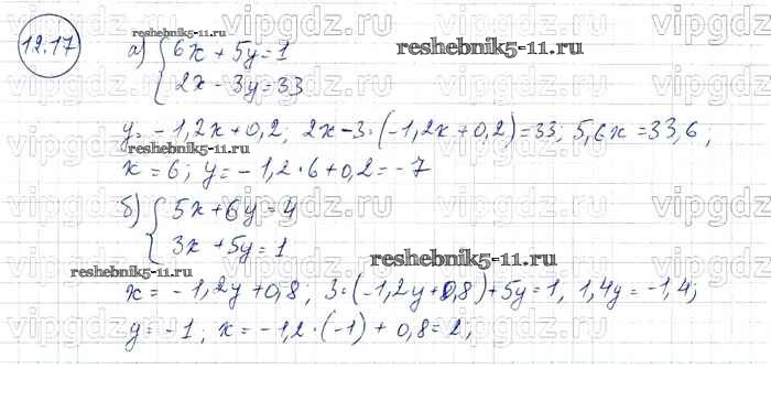 Готовая домашняя работа с ответами по Алгебре за 7 класс Мордкович, Александрова, Мишустина, Тульчинская Задачник Базовый уровень Часть 2 Мнемозина 2013 ФГОС - § 12. Метод подстановки 17