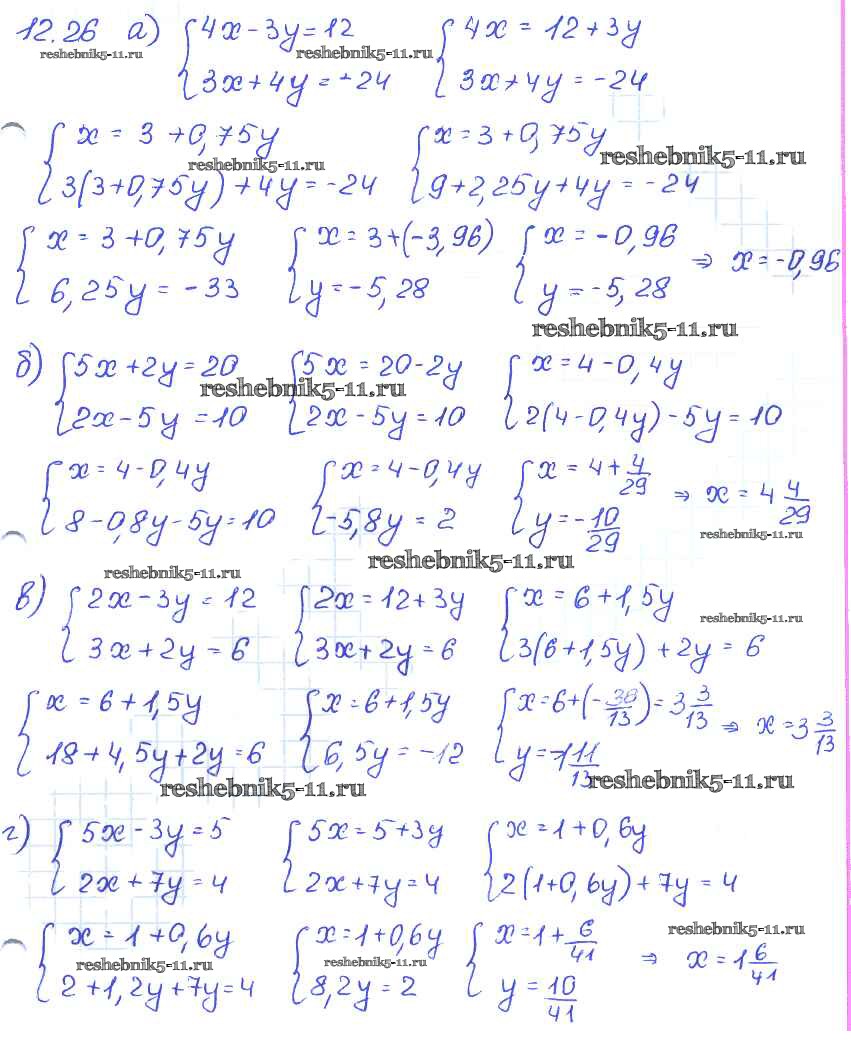 Готовая домашняя работа с ответами по Алгебре за 7 класс Мордкович, Александрова, Мишустина, Тульчинская Задачник Базовый уровень Часть 2 Мнемозина 2013 ФГОС - § 12. Метод подстановки 26