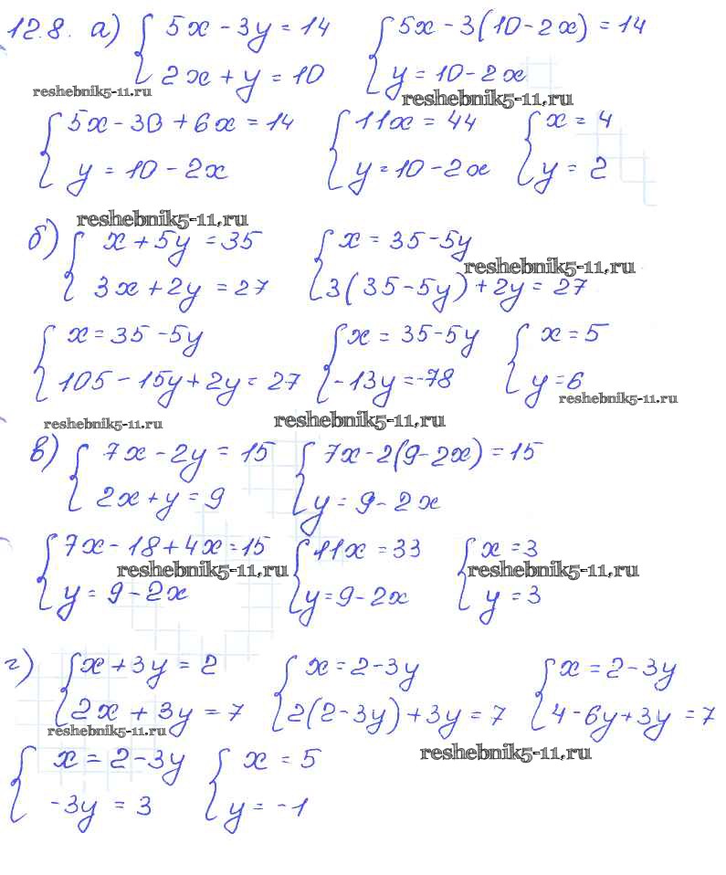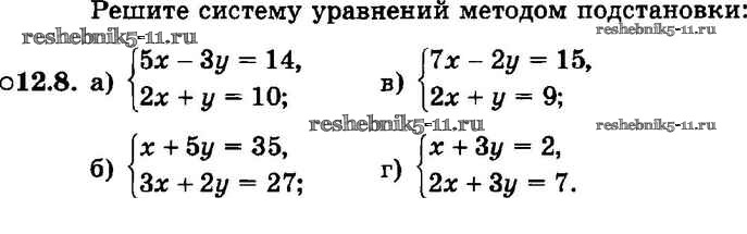 Готовая домашняя работа с ответами по Алгебре за 7 класс Мордкович, Александрова, Мишустина, Тульчинская Задачник Базовый уровень Часть 2 Мнемозина 2013 ФГОС - § 12. Метод подстановки 8