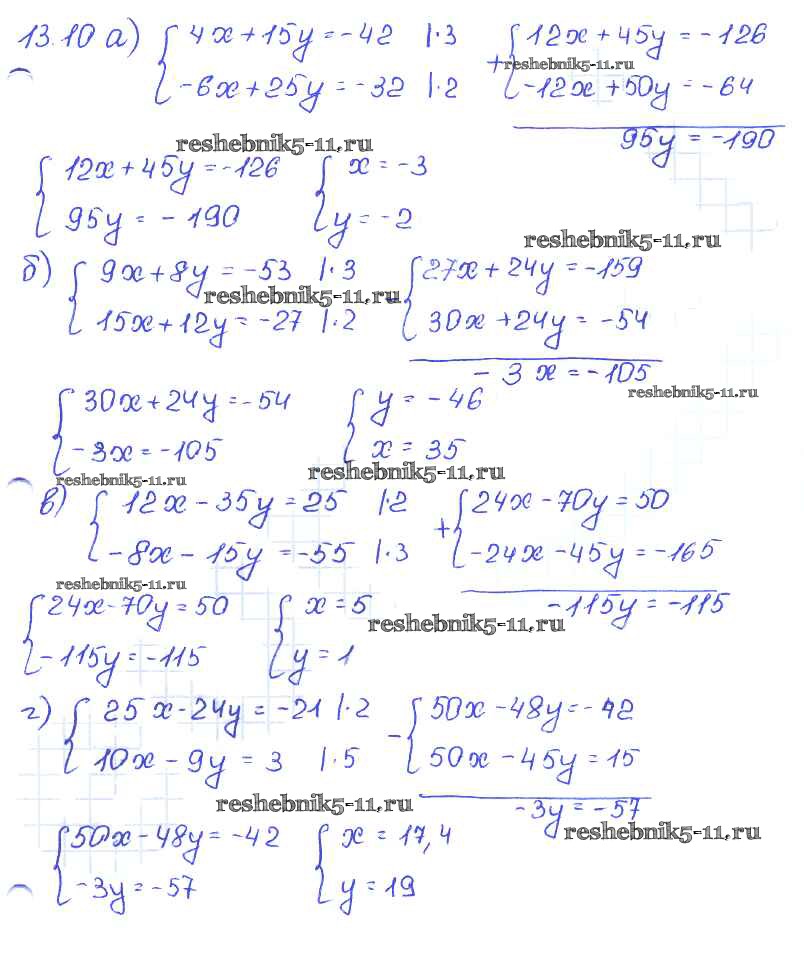 Готовая домашняя работа с ответами по Алгебре за 7 класс Мордкович, Александрова, Мишустина, Тульчинская Задачник Базовый уровень Часть 2 Мнемозина 2013 ФГОС - § 13. Метод алгебраического сложения 10