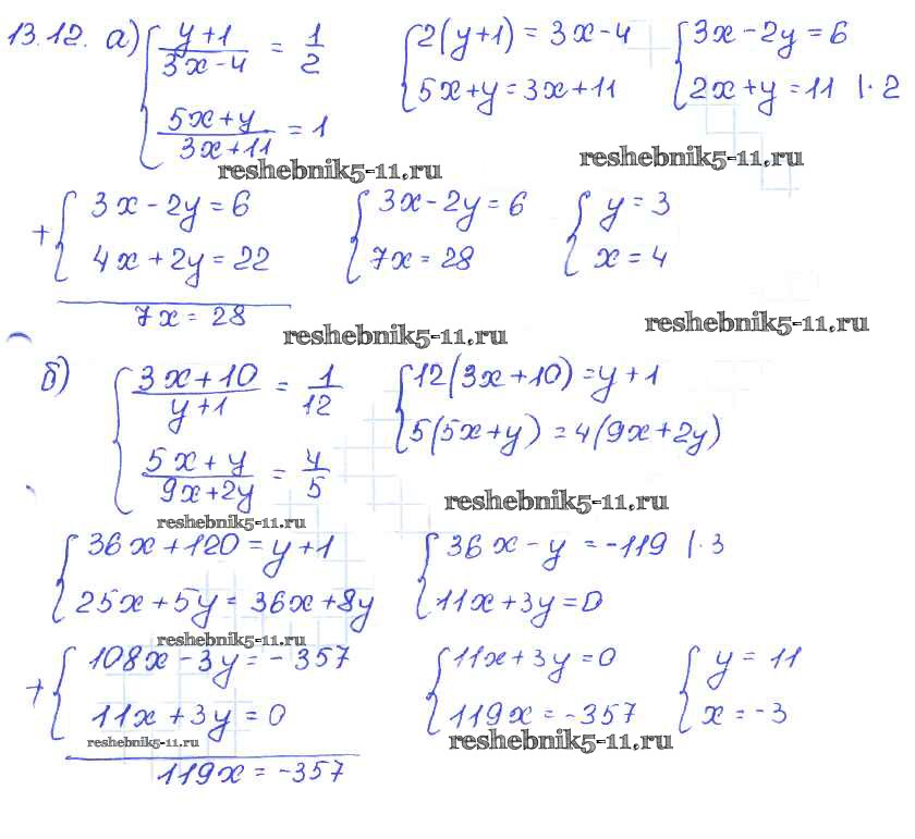 Готовая домашняя работа с ответами по Алгебре за 7 класс Мордкович, Александрова, Мишустина, Тульчинская Задачник Базовый уровень Часть 2 Мнемозина 2013 ФГОС - § 13. Метод алгебраического сложения 12