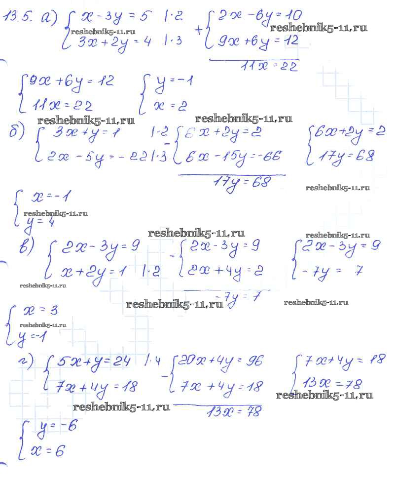 Готовая домашняя работа с ответами по Алгебре за 7 класс Мордкович, Александрова, Мишустина, Тульчинская Задачник Базовый уровень Часть 2 Мнемозина 2013 ФГОС - § 13. Метод алгебраического сложения 5