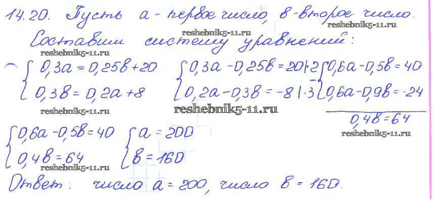 Готовая домашняя работа с ответами по Алгебре за 7 класс Мордкович, Александрова, Мишустина, Тульчинская Задачник Базовый уровень Часть 2 Мнемозина 2013 ФГОС - § 14. Системы двух линейных уравнений с двумя переменными как математические модели реальных ситуаций 20