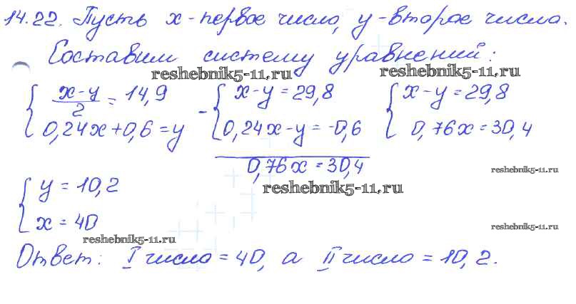 Готовая домашняя работа с ответами по Алгебре за 7 класс Мордкович, Александрова, Мишустина, Тульчинская Задачник Базовый уровень Часть 2 Мнемозина 2013 ФГОС - § 14. Системы двух линейных уравнений с двумя переменными как математические модели реальных ситуаций 22