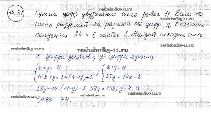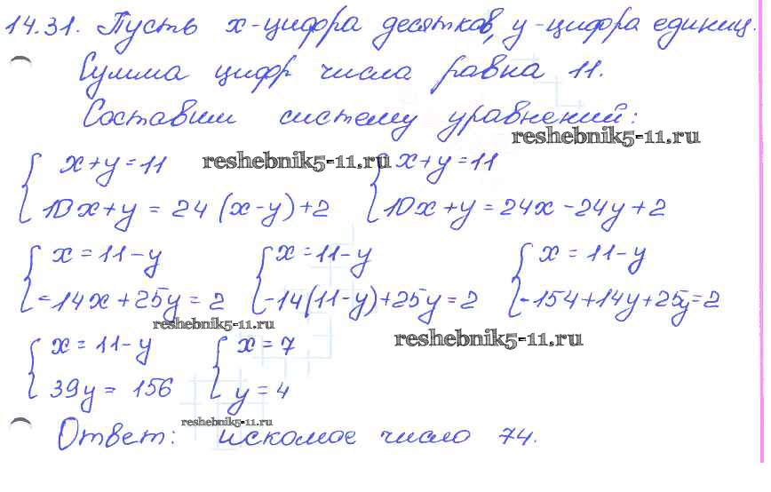 Готовая домашняя работа с ответами по Алгебре за 7 класс Мордкович, Александрова, Мишустина, Тульчинская Задачник Базовый уровень Часть 2 Мнемозина 2013 ФГОС - § 14. Системы двух линейных уравнений с двумя переменными как математические модели реальных ситуаций 31