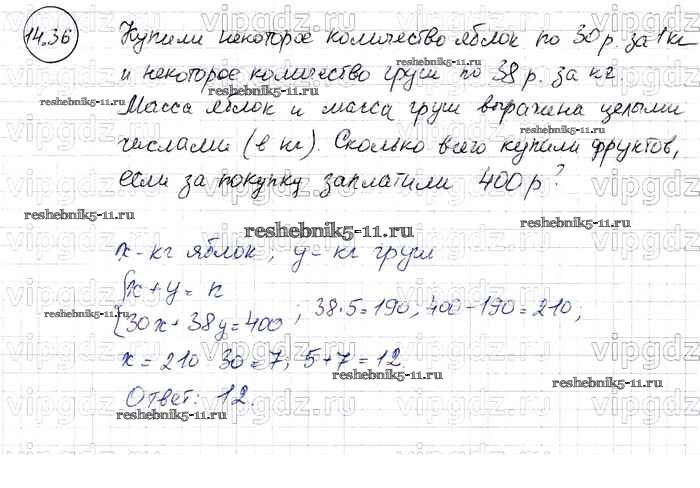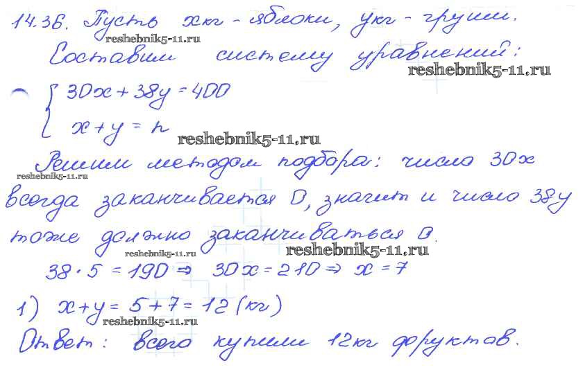 Готовая домашняя работа с ответами по Алгебре за 7 класс Мордкович, Александрова, Мишустина, Тульчинская Задачник Базовый уровень Часть 2 Мнемозина 2013 ФГОС - § 14. Системы двух линейных уравнений с двумя переменными как математические модели реальных ситуаций 36
