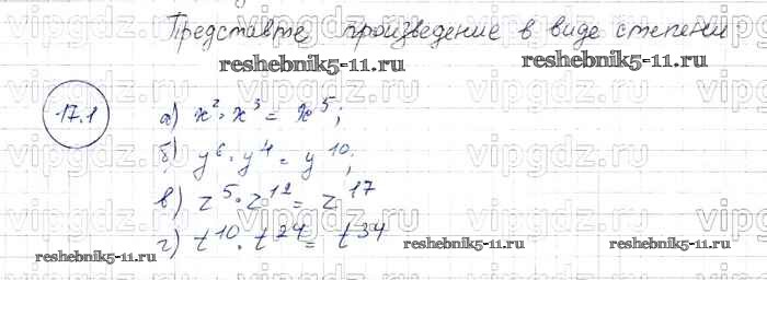 Готовая домашняя работа с ответами по Алгебре за 7 класс Мордкович, Александрова, Мишустина, Тульчинская Задачник Базовый уровень Часть 2 Мнемозина 2013 ФГОС - § 17. Свойства степени с натуральными показателями 1