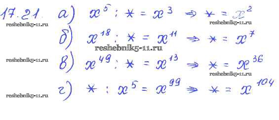Готовая домашняя работа с ответами по Алгебре за 7 класс Мордкович, Александрова, Мишустина, Тульчинская Задачник Базовый уровень Часть 2 Мнемозина 2013 ФГОС - § 17. Свойства степени с натуральными показателями 21