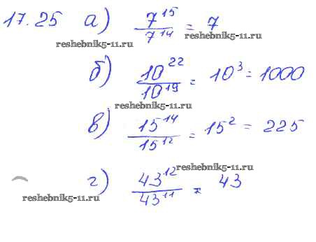 Готовая домашняя работа с ответами по Алгебре за 7 класс Мордкович, Александрова, Мишустина, Тульчинская Задачник Базовый уровень Часть 2 Мнемозина 2013 ФГОС - § 17. Свойства степени с натуральными показателями 25