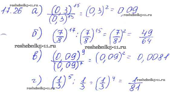 Готовая домашняя работа с ответами по Алгебре за 7 класс Мордкович, Александрова, Мишустина, Тульчинская Задачник Базовый уровень Часть 2 Мнемозина 2013 ФГОС - § 17. Свойства степени с натуральными показателями 26