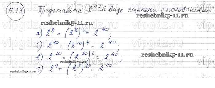 Готовая домашняя работа с ответами по Алгебре за 7 класс Мордкович, Александрова, Мишустина, Тульчинская Задачник Базовый уровень Часть 2 Мнемозина 2013 ФГОС - § 17. Свойства степени с натуральными показателями 29