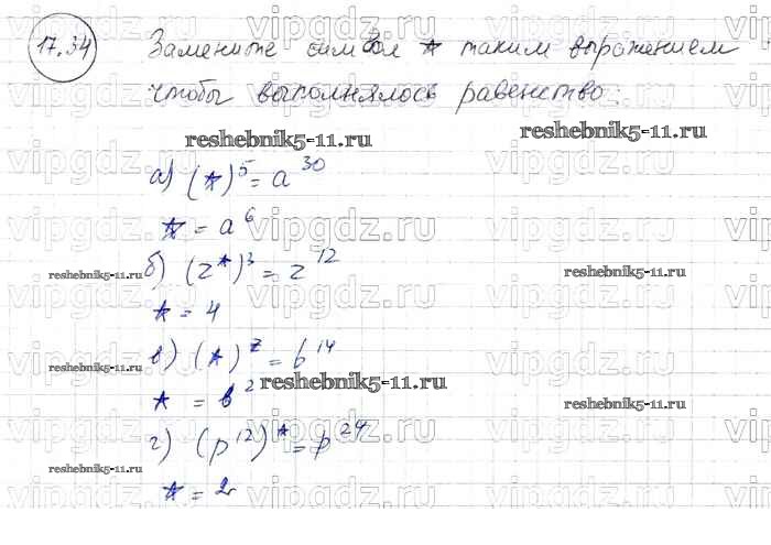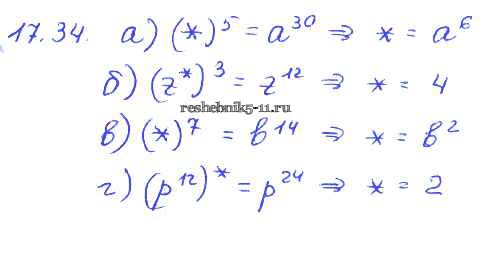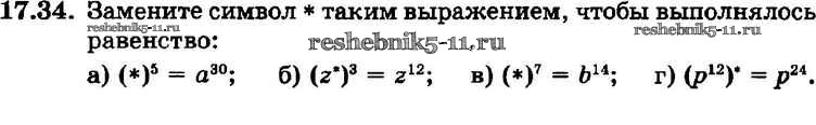 Готовая домашняя работа с ответами по Алгебре за 7 класс Мордкович, Александрова, Мишустина, Тульчинская Задачник Базовый уровень Часть 2 Мнемозина 2013 ФГОС - § 17. Свойства степени с натуральными показателями 34