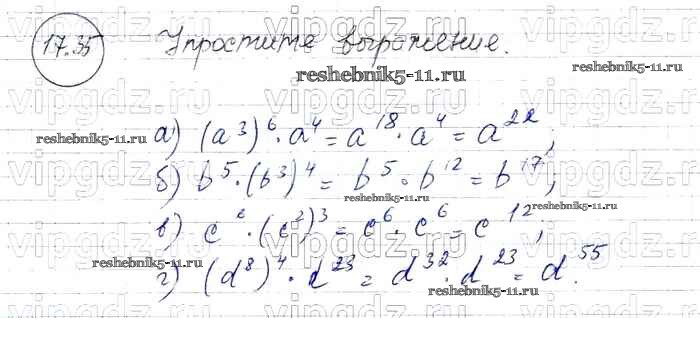 Готовая домашняя работа с ответами по Алгебре за 7 класс Мордкович, Александрова, Мишустина, Тульчинская Задачник Базовый уровень Часть 2 Мнемозина 2013 ФГОС - § 17. Свойства степени с натуральными показателями 35