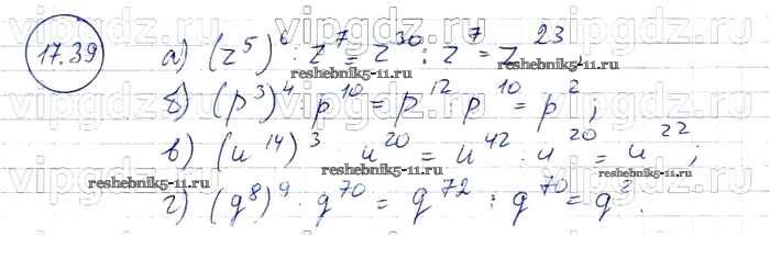 Готовая домашняя работа с ответами по Алгебре за 7 класс Мордкович, Александрова, Мишустина, Тульчинская Задачник Базовый уровень Часть 2 Мнемозина 2013 ФГОС - § 17. Свойства степени с натуральными показателями 39