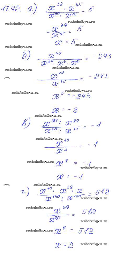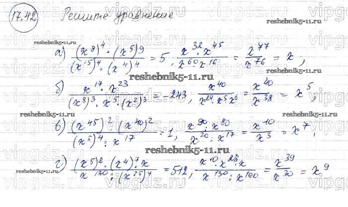 Готовая домашняя работа с ответами по Алгебре за 7 класс Мордкович, Александрова, Мишустина, Тульчинская Задачник Базовый уровень Часть 2 Мнемозина 2013 ФГОС - § 17. Свойства степени с натуральными показателями 42