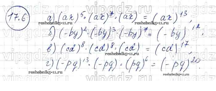 Готовая домашняя работа с ответами по Алгебре за 7 класс Мордкович, Александрова, Мишустина, Тульчинская Задачник Базовый уровень Часть 2 Мнемозина 2013 ФГОС - § 17. Свойства степени с натуральными показателями 6