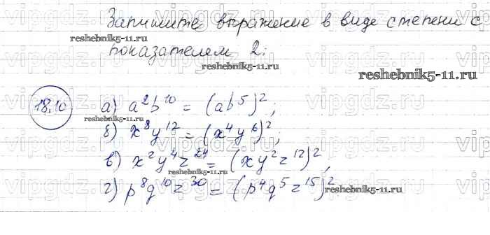 Готовая домашняя работа с ответами по Алгебре за 7 класс Мордкович, Александрова, Мишустина, Тульчинская Задачник Базовый уровень Часть 2 Мнемозина 2013 ФГОС - § 18. Умножение и деление степеней с одинаковыми показателями 10