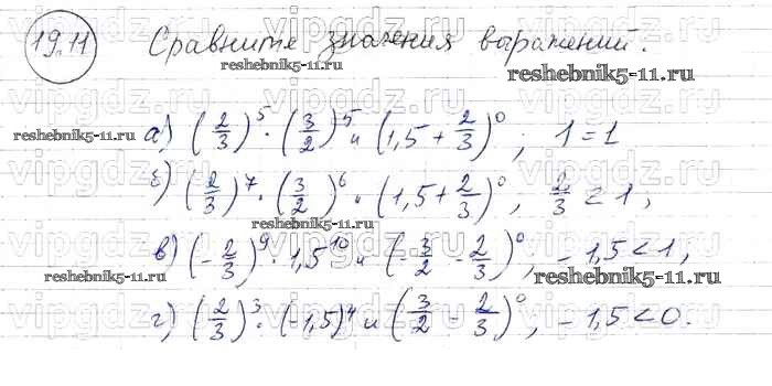 Готовая домашняя работа с ответами по Алгебре за 7 класс Мордкович, Александрова, Мишустина, Тульчинская Задачник Базовый уровень Часть 2 Мнемозина 2013 ФГОС - § 19. Степень с нулевым показателем 11