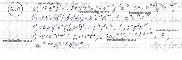 Готовая домашняя работа с ответами по Алгебре за 7 класс Мордкович, Александрова, Мишустина, Тульчинская Задачник Базовый уровень Часть 2 Мнемозина 2013 ФГОС - § 20. Понятие одночлена. стандартный вид одночлена 15