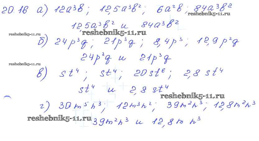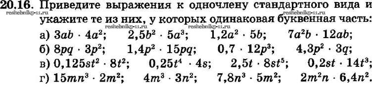 Готовая домашняя работа с ответами по Алгебре за 7 класс Мордкович, Александрова, Мишустина, Тульчинская Задачник Базовый уровень Часть 2 Мнемозина 2013 ФГОС - § 20. Понятие одночлена. стандартный вид одночлена 16