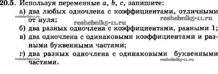Готовая домашняя работа с ответами по Алгебре за 7 класс Мордкович, Александрова, Мишустина, Тульчинская Задачник Базовый уровень Часть 2 Мнемозина 2013 ФГОС - § 20. Понятие одночлена. стандартный вид одночлена 5