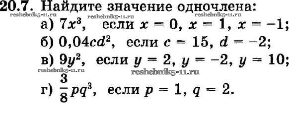 Готовая домашняя работа с ответами по Алгебре за 7 класс Мордкович, Александрова, Мишустина, Тульчинская Задачник Базовый уровень Часть 2 Мнемозина 2013 ФГОС - § 20. Понятие одночлена. стандартный вид одночлена 7