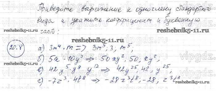 Готовая домашняя работа с ответами по Алгебре за 7 класс Мордкович, Александрова, Мишустина, Тульчинская Задачник Базовый уровень Часть 2 Мнемозина 2013 ФГОС - § 20. Понятие одночлена. стандартный вид одночлена 8