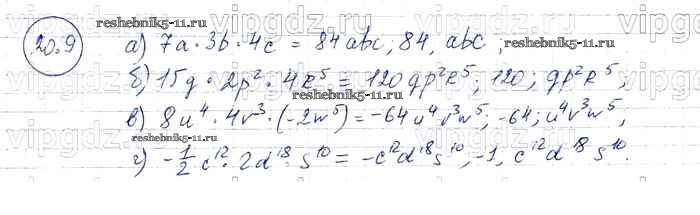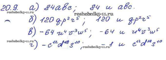 Готовая домашняя работа с ответами по Алгебре за 7 класс Мордкович, Александрова, Мишустина, Тульчинская Задачник Базовый уровень Часть 2 Мнемозина 2013 ФГОС - § 20. Понятие одночлена. стандартный вид одночлена 9