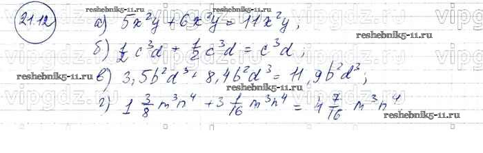 Готовая домашняя работа с ответами по Алгебре за 7 класс Мордкович, Александрова, Мишустина, Тульчинская Задачник Базовый уровень Часть 2 Мнемозина 2013 ФГОС - § 21. Сложение и вычитание одочленов 12