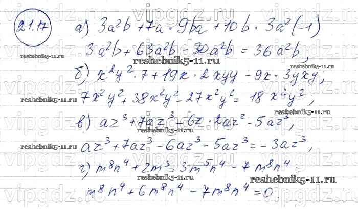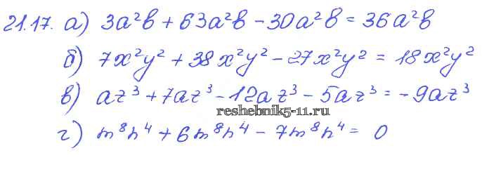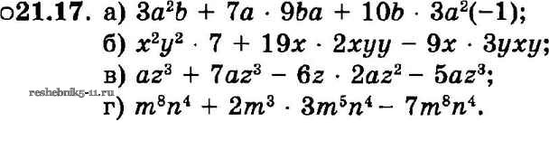 Готовая домашняя работа с ответами по Алгебре за 7 класс Мордкович, Александрова, Мишустина, Тульчинская Задачник Базовый уровень Часть 2 Мнемозина 2013 ФГОС - § 21. Сложение и вычитание одочленов 17
