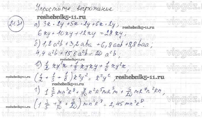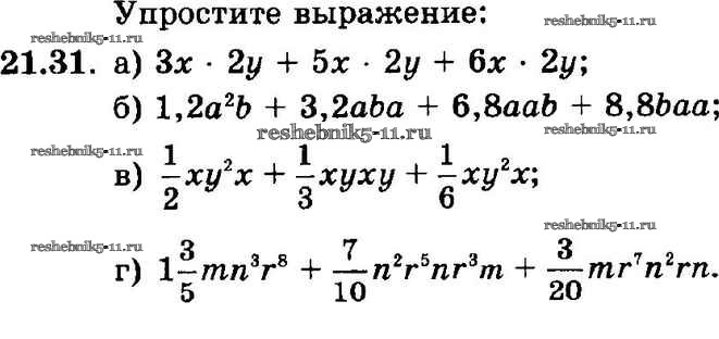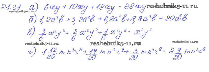 Готовая домашняя работа с ответами по Алгебре за 7 класс Мордкович, Александрова, Мишустина, Тульчинская Задачник Базовый уровень Часть 2 Мнемозина 2013 ФГОС - § 21. Сложение и вычитание одочленов 31