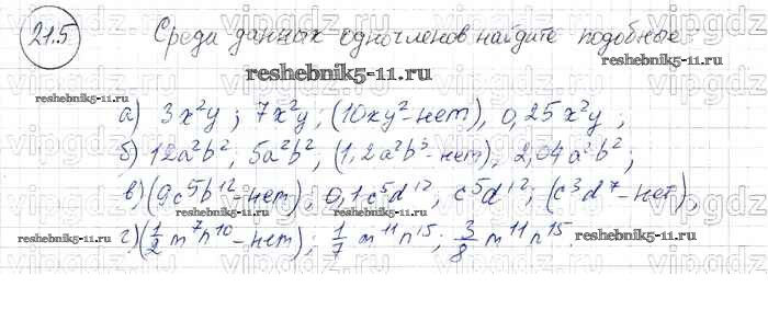 Готовая домашняя работа с ответами по Алгебре за 7 класс Мордкович, Александрова, Мишустина, Тульчинская Задачник Базовый уровень Часть 2 Мнемозина 2013 ФГОС - § 21. Сложение и вычитание одочленов 5