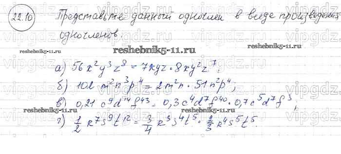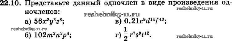 Готовая домашняя работа с ответами по Алгебре за 7 класс Мордкович, Александрова, Мишустина, Тульчинская Задачник Базовый уровень Часть 2 Мнемозина 2013 ФГОС - § 22. Умножение одночленов. Возведение одночлена в натуральную степень 10