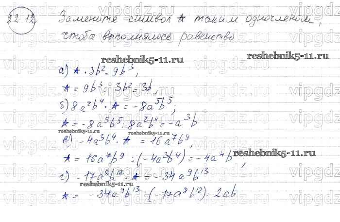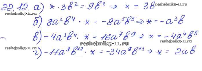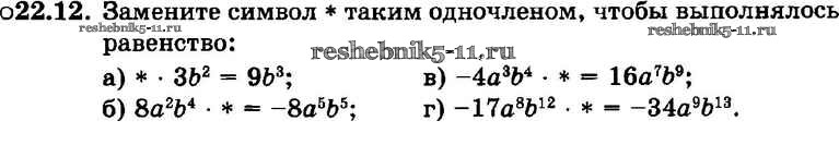 Готовая домашняя работа с ответами по Алгебре за 7 класс Мордкович, Александрова, Мишустина, Тульчинская Задачник Базовый уровень Часть 2 Мнемозина 2013 ФГОС - § 22. Умножение одночленов. Возведение одночлена в натуральную степень 12